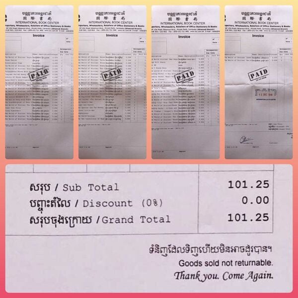 2023年6月25日 プノンペン くっくま孤児院 50冊,文具類,果物,200$