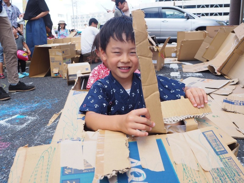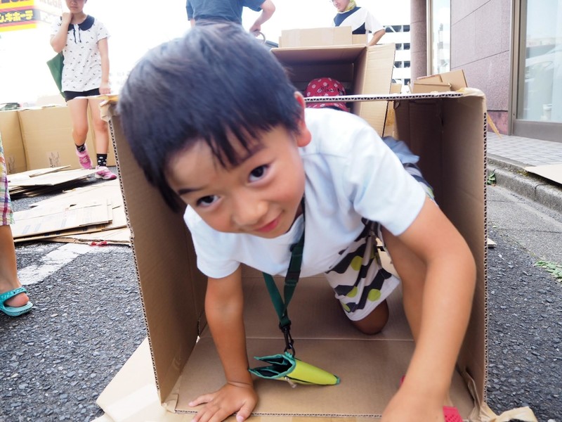 たくさんの段ボールを使って落書きしたり、家をつくったり、壊したり。遊び方は無限大!