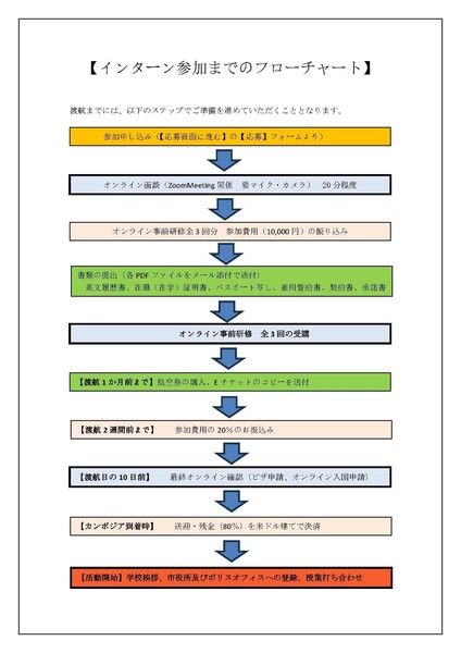 参加費用は初めの1か月は100,000円、2か月で180,000円、3か月で260,000円です。長期滞在がお得です。滞在中の部屋を無償でご用意。加えて、ビザ更新費用、現地案内、基本教材費、サポート諸経費含みます。飲食費・交通費は各自の実費負担となります。(契約は、3カ月毎更新となります。)他、共益費月額15$。 |