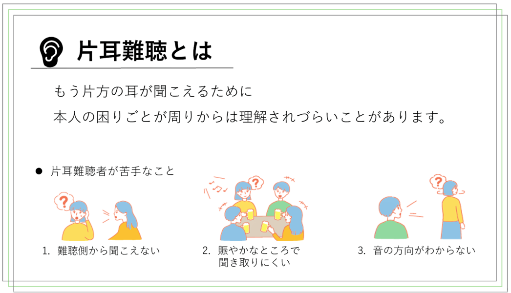 そのため、近年「片耳難聴だからこそ」の悩みがあることが分かってきましたが