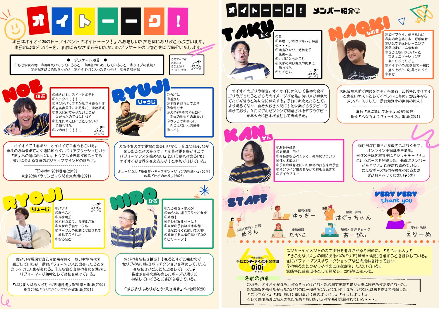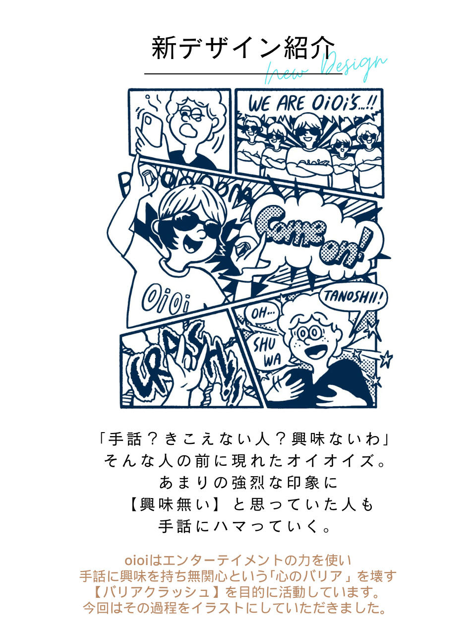 私たち、一般社団法人手話エンターテイメント発信団oioiは、世の中にある偏見や誤解、無関心から生まれる心のバリアを壊し、一緒にオモシロがれる社会を創ることを目指しています。
