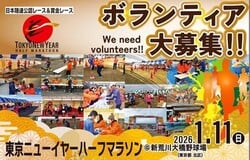国内/単発ボランティア 【1/11マラソン大会ボランティア募集】東京ニューイヤーハーフマラソン2026 一般財団法人アスリートスマイル 東京 北区[新荒川大橋野球場] 無料 2026年1月11日(日) 初回公開日:2025年10月09日 最終公開日:2025年10月09日 更新日:2025年10月09日 活動曜日:土日祝 東京ニューイヤーハーフマラソンのボランティアスタッフを募集します。 1万人規模のハイレベルなランナーが参加する大会で、ぜひ皆様のお力をお借りできればと思っております。 よろしくお願いいたします。