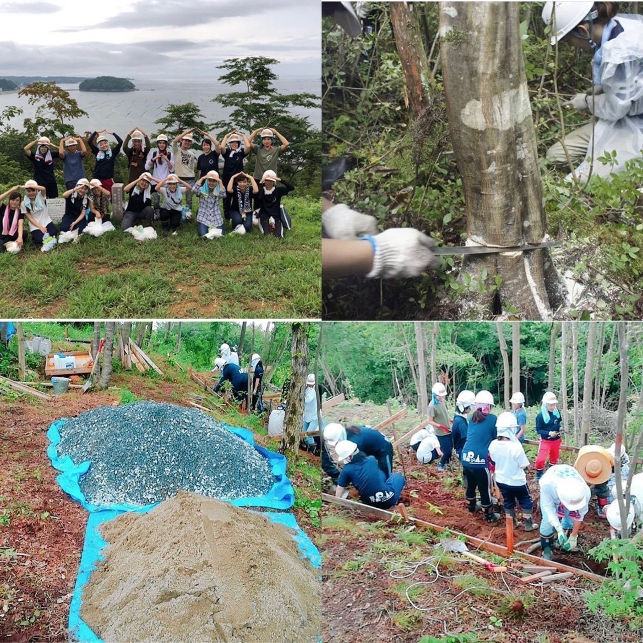 暑い中、全国各地の学生参加者と海の見える命の森実行委員長の後藤一磨さん、副実行委員長の阿部寛行さんで汗水流し、完成に向けて必死に取り組みました。そしてようやく完成したときの達成感は今でも鮮明に覚えています。