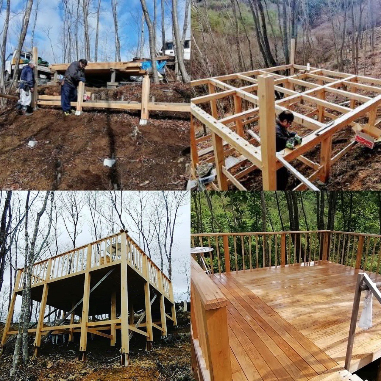 その後、後藤一磨さん、阿部寛行さんをはじめ多くの有志やボランティア、地元の大工さんなどの力を借り、柱を建て、床と手すりの整備段階まで進めることができました。