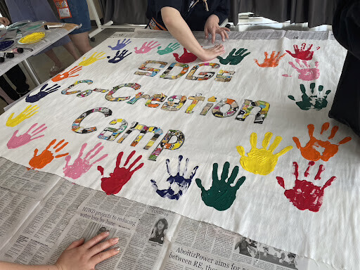 バナー作成はキャンプ開始初日に参加者全員で作成しました。初日に全員で一つのものを作るということが、プログラム期間中の団結を作る大きな要因になったと感じています。