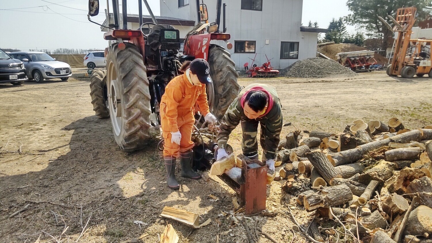 ニンニクの芽出しと薪割りのお手伝いさせていだだきました!!🌱