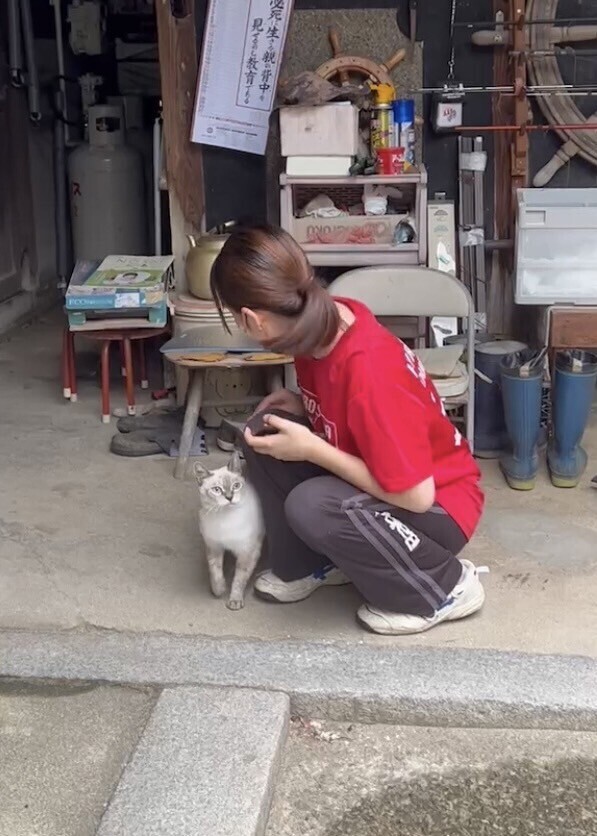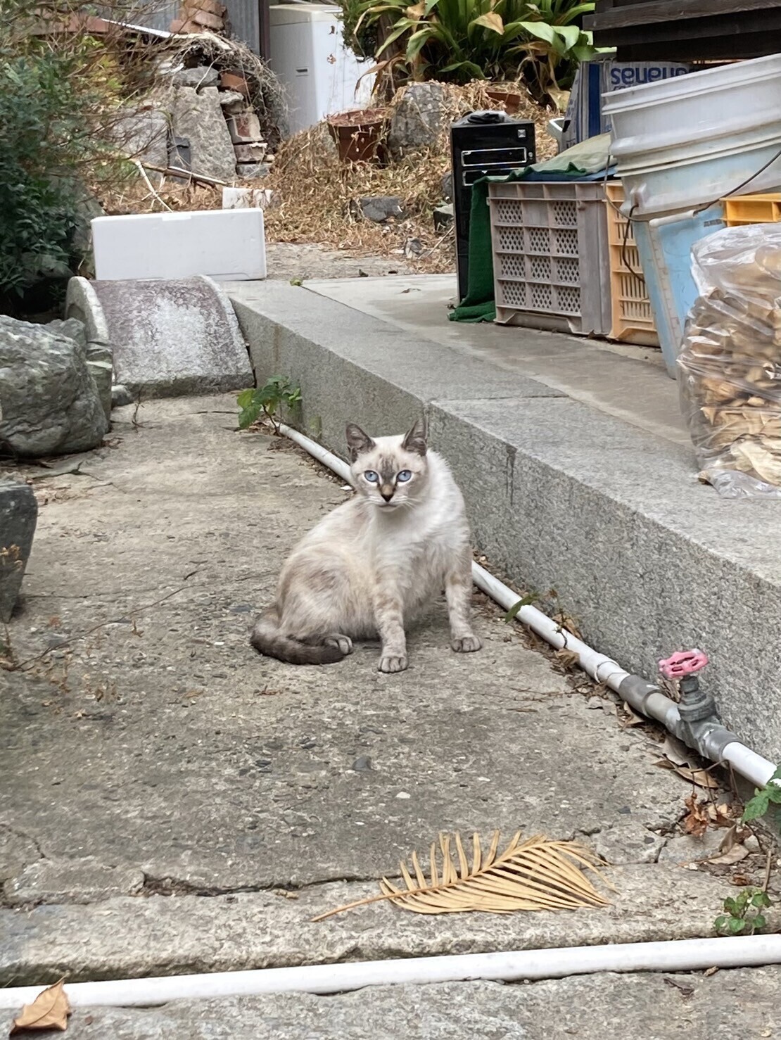 農家さんの事務所につくと、地域猫のあおちゃんがお出迎えしてくれました!最初は怖がって近ずいてくれませんでしたが、慣れると甘えん坊で激カワです😽