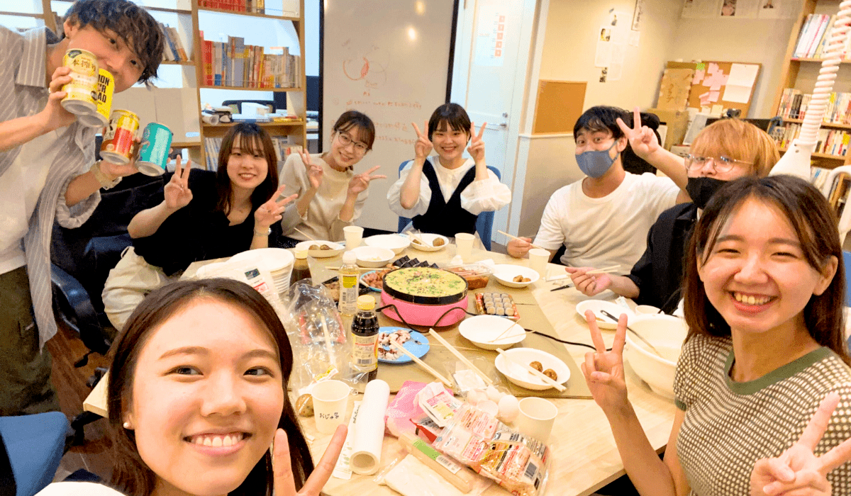そうして周りから、たくさん声をかけてもらっていくうちに、気づけば私も周りのインターン生に、そして社会人のプロボノの皆さんにも「ヘルプいきます!」「いま、大丈夫ですか?」と自然と声をかけられるようになっていました。 ※たこパの時の写真。