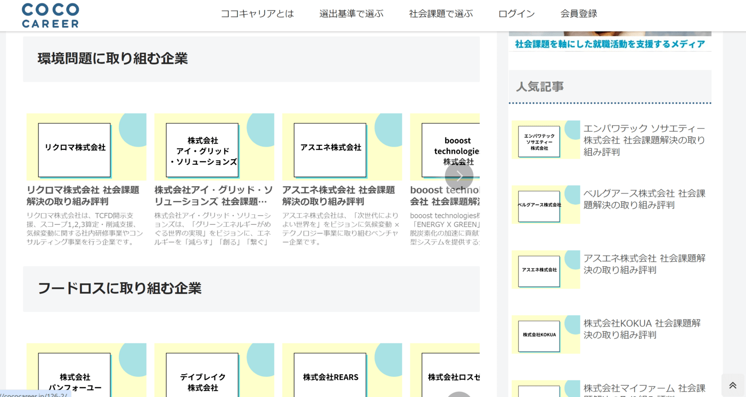 ココキャリアでは、可能な限りすべての社会課題に取り組む企業について、厳選して掲載することを目指します。