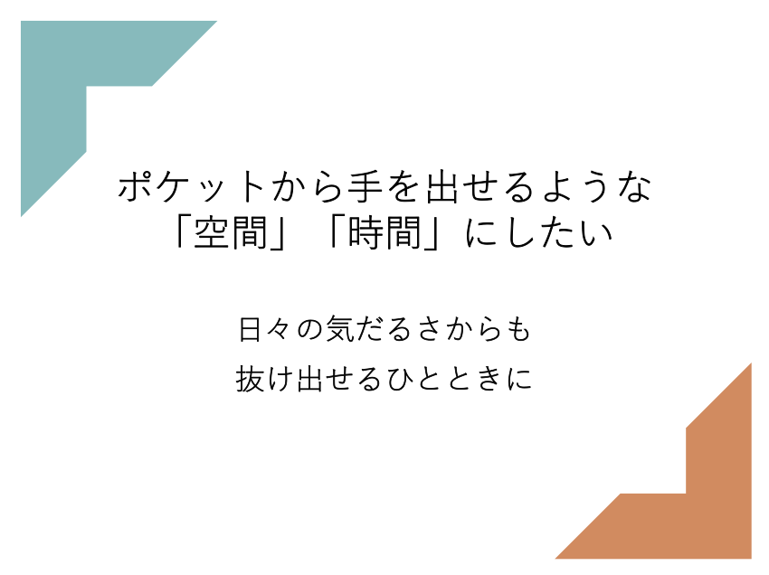 帰る頃には、自分にとって大切な人に伝えたくなるような空間を目指しています。