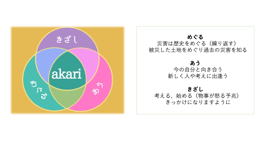 akariは「おみやげ話のように広がる減災啓発のかたちづくり」の実現を目指しています。