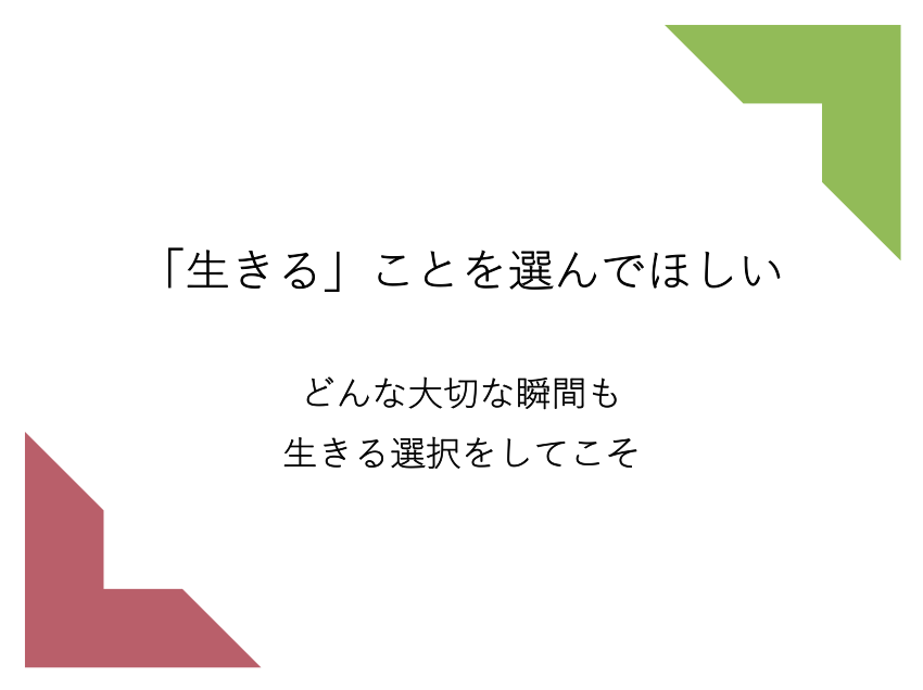 「生きたい」と思って「生きる選択肢」を選べるきっかけでありたいと思っています。