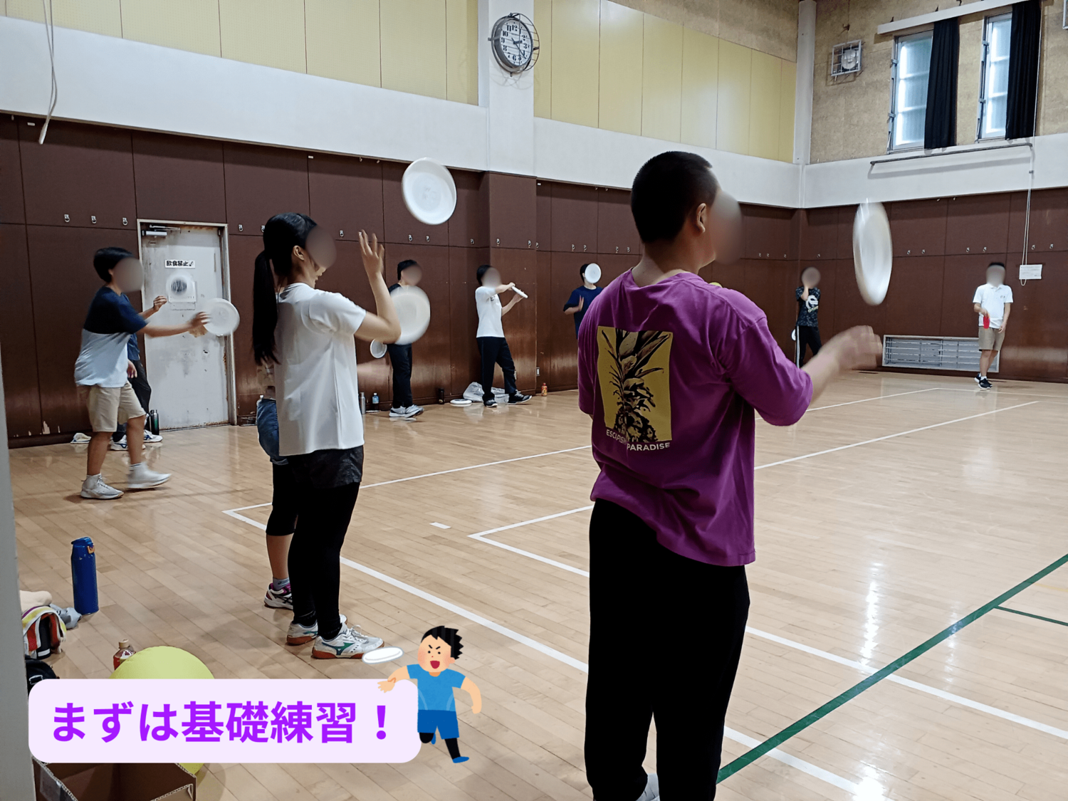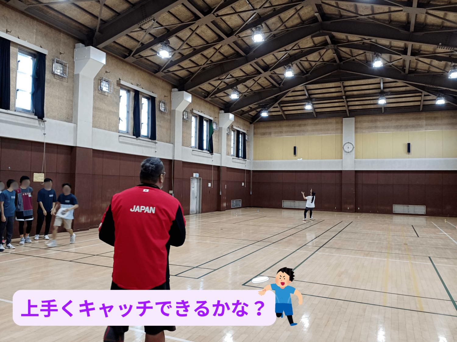 当日の第一部は日本スポーツ文化創造協議会からインストラクターの方をお招きし、フライングディスクに挑戦しました。