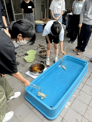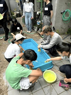 今回私たちは、次回の「みどりの学校」で行うマリーゴールドの染め物を試作しました。「草木染め」という方法で作ったのですが、意外に簡単に作るとができ驚きました。染め物に触れることができた良い機会でしたし、身近なもので染まり方が変わることに魅力を感じました。