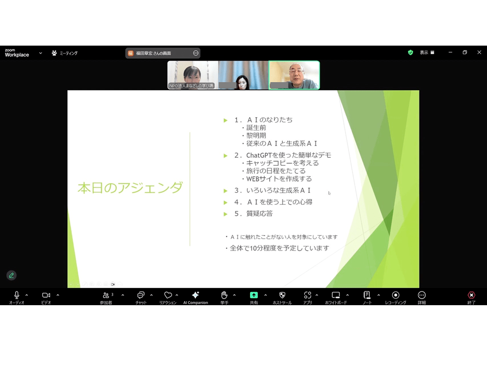 今回は、無料塾の主要メンバー3名がそれぞれの専門分野に基づいて講義を行いました。