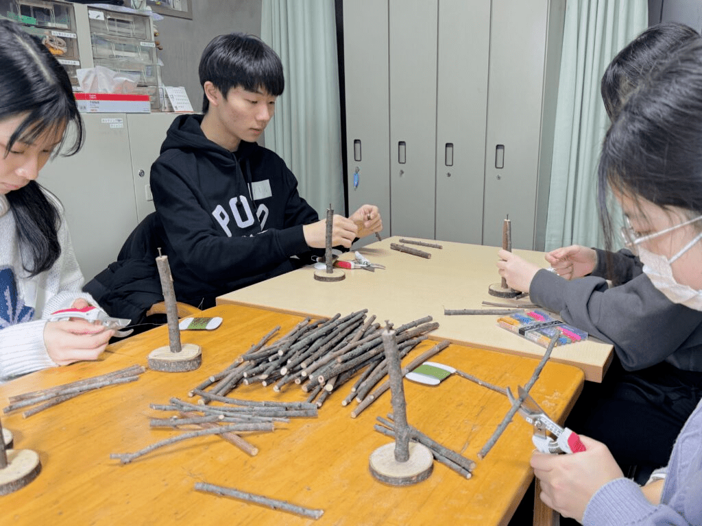 今回は「木の枝でクリスマスツリーを作ろう」という内容なので、木の枝の長さを整えたり、