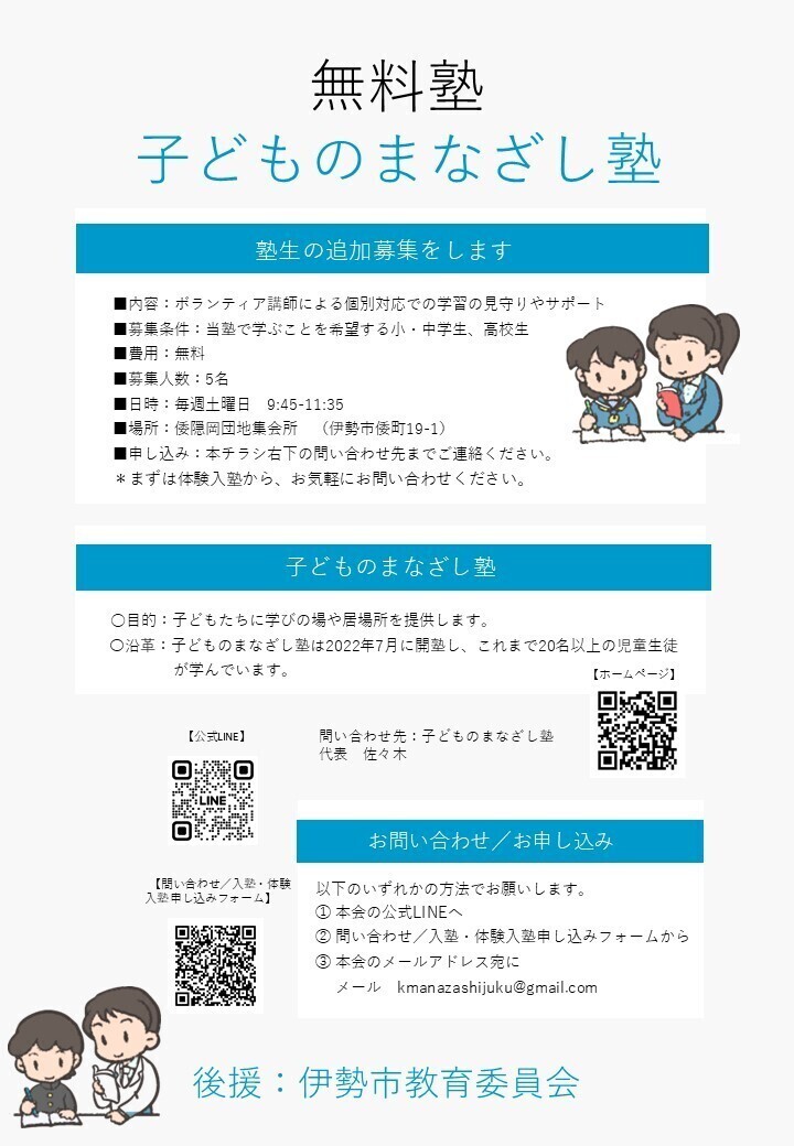 子どものまなざし塾は引き続き子どもの学習の見守り・サポートボランティアを募集しています。