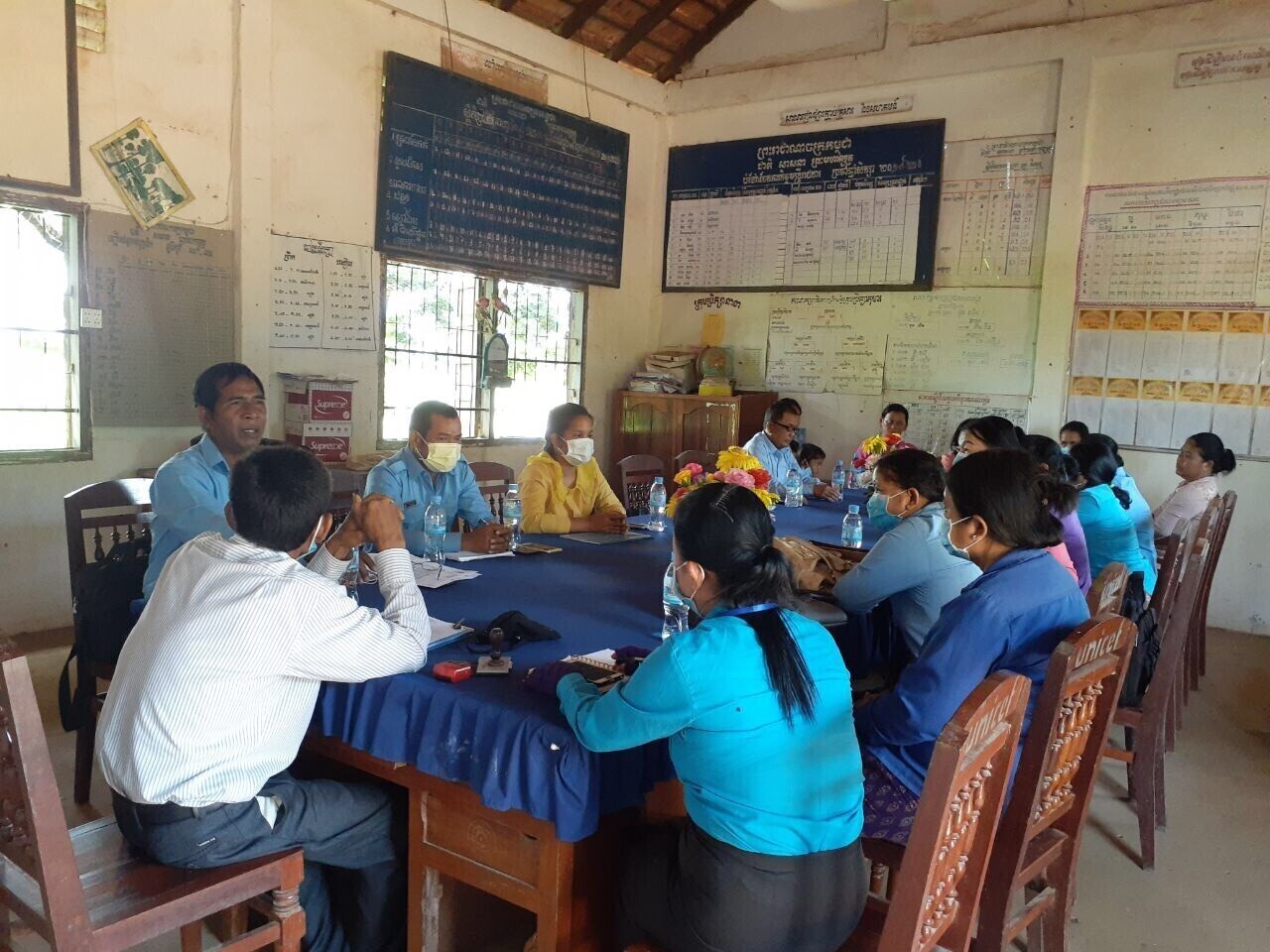 現在、閉校しているカンボジアのこちらの学校では、10日と20日に職員が集まって、会議を開いています。