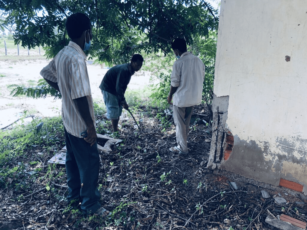 学校が再開するまでに、トイレが完成できるように準備を進めます。