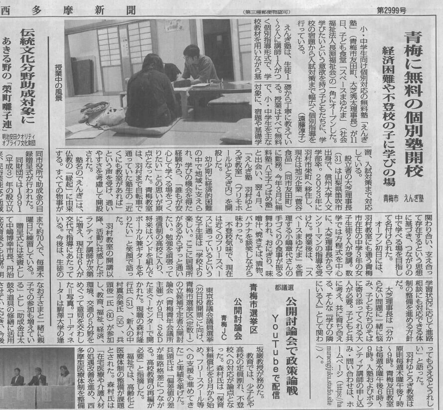 西多摩新聞に掲載されました!クレジット付記であれば、HPやSNS等への掲載は問題ないとのことで、凄く嬉しいです。