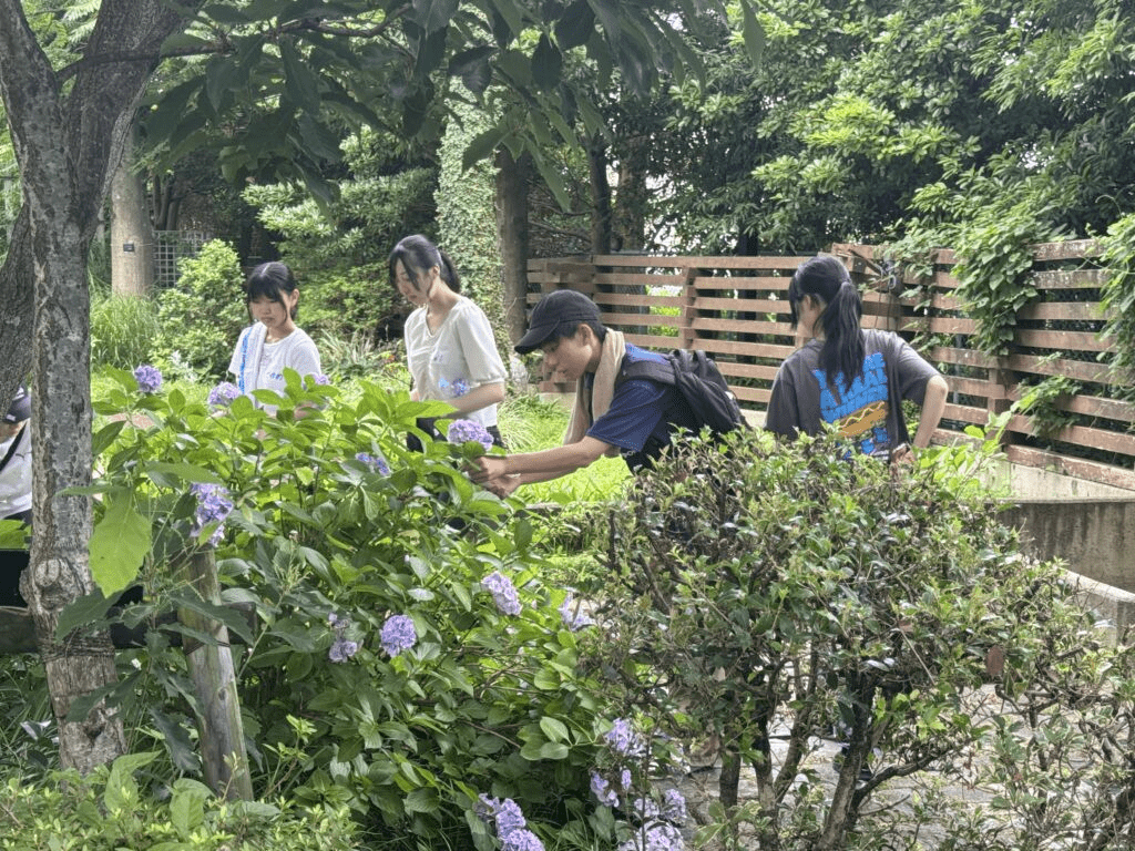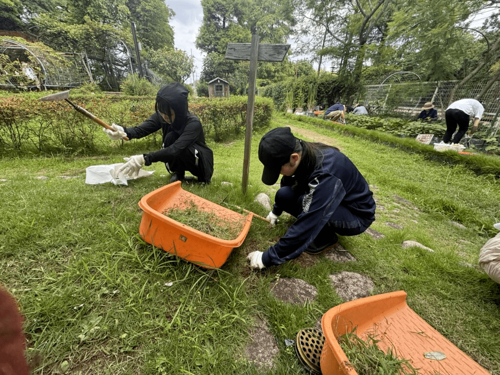 <学生ボランティアので育てているさつまいも畑やその周辺の除草>
