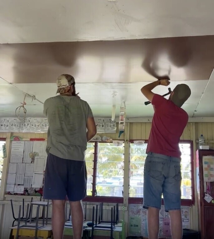 私の活動は、修繕ボランティア。現地の方々と一緒に、学校の天井を直したり、ペンキで壁を塗り直したりしました。