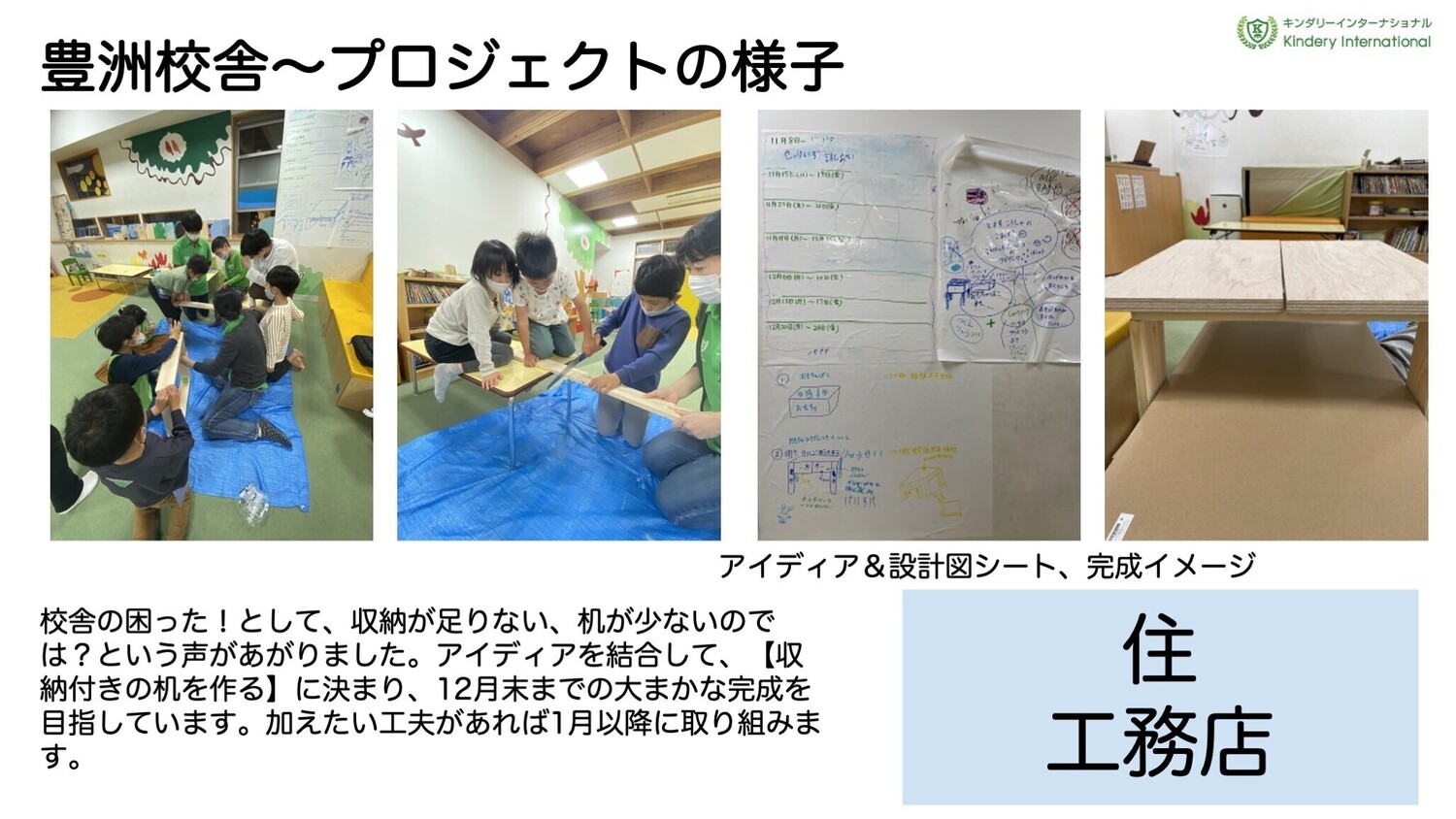 アイディアを結合して、【収納付きの机を作る】に決まり、12月末までの大まかな完成を目指しています。加えたい工夫があれば1月以降に取り組みます。