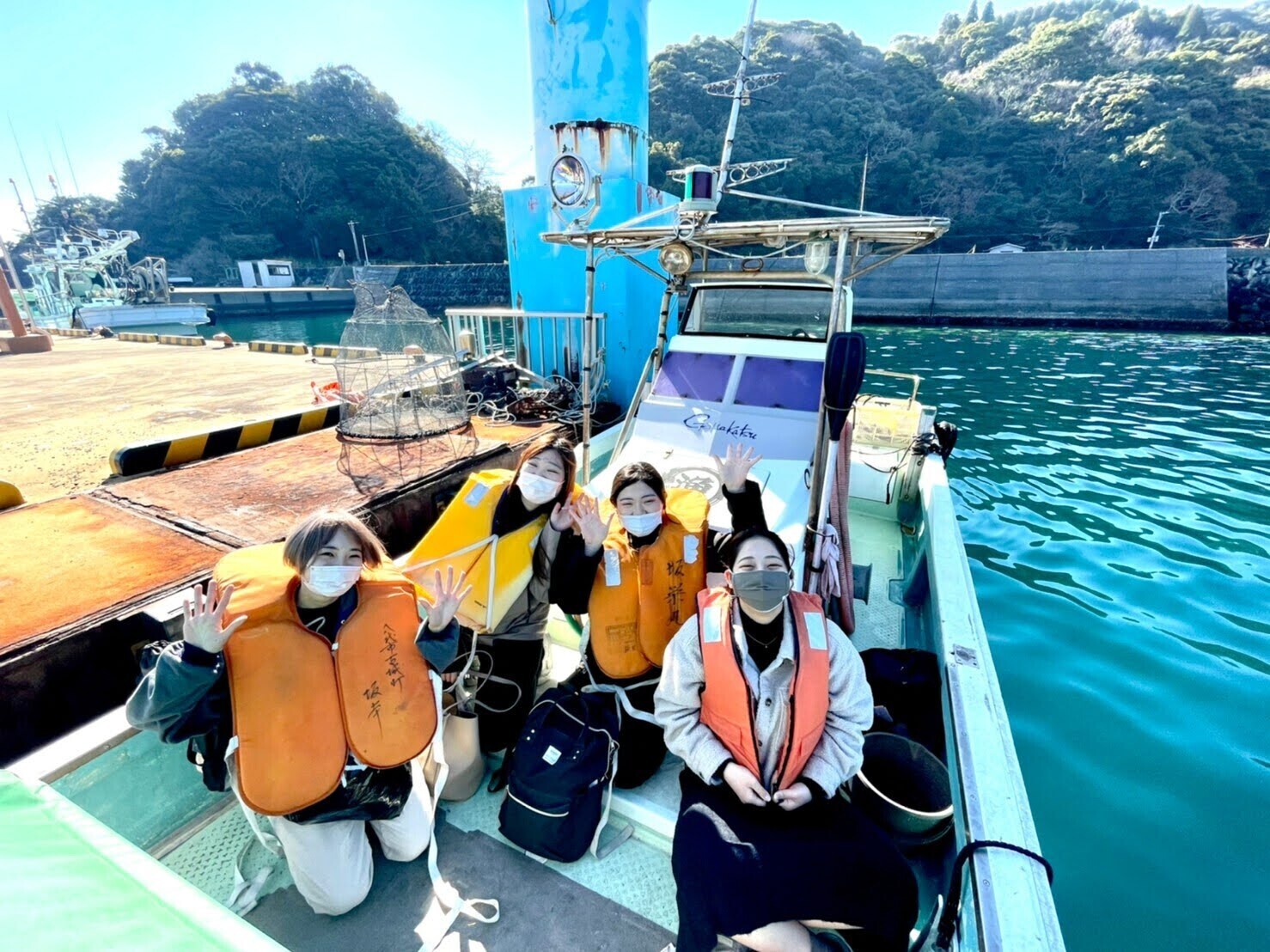 帰り際に、賢一さんとわかこさんが港まで見送ってくださりました。「いってらっしゃい。」と一人一人の目を見て、声をかけてくださいました。