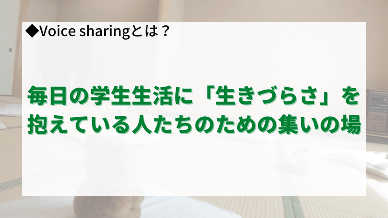 学生団体ユースリンクは、毎月1回、学生が生きづらさを分かち合う場『Voice sharing(ボイス・シェアリング)』を開催しています。この記事では、Voice sharingを紹介します。