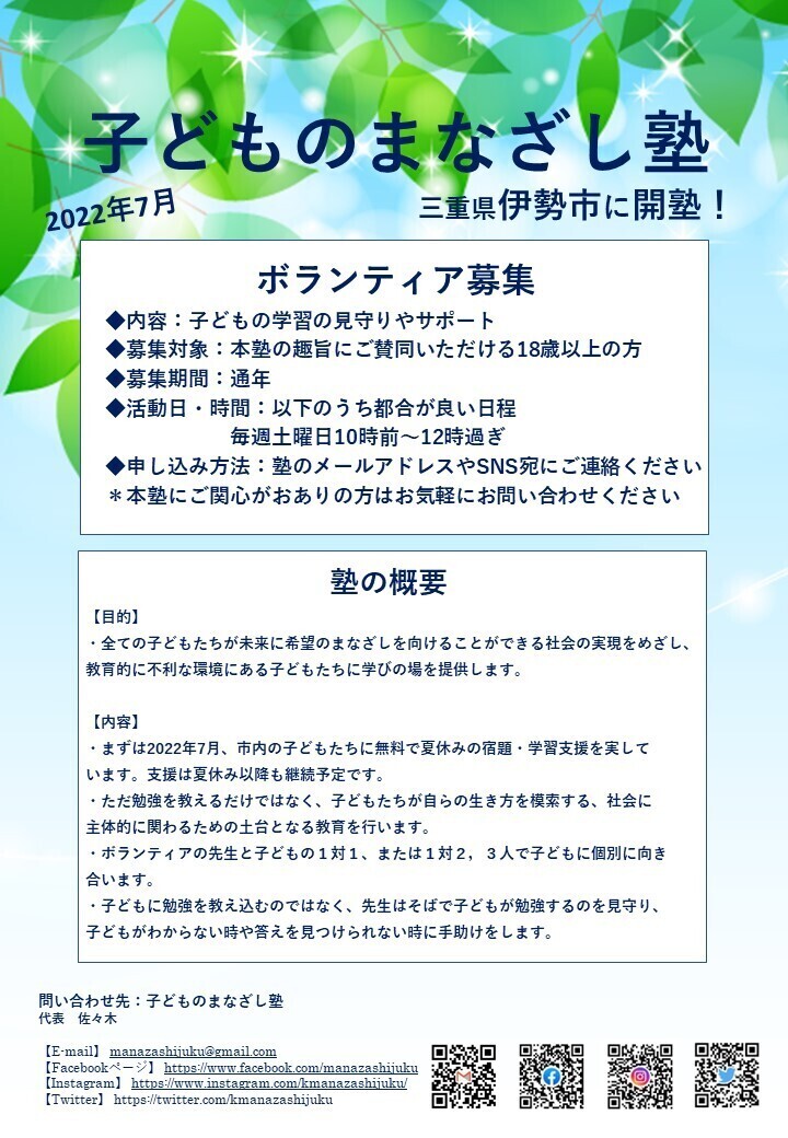 7月30日(土)、三重県伊勢市内で第2回目の無料塾 夏休みの宿題・学習支援を行いました!