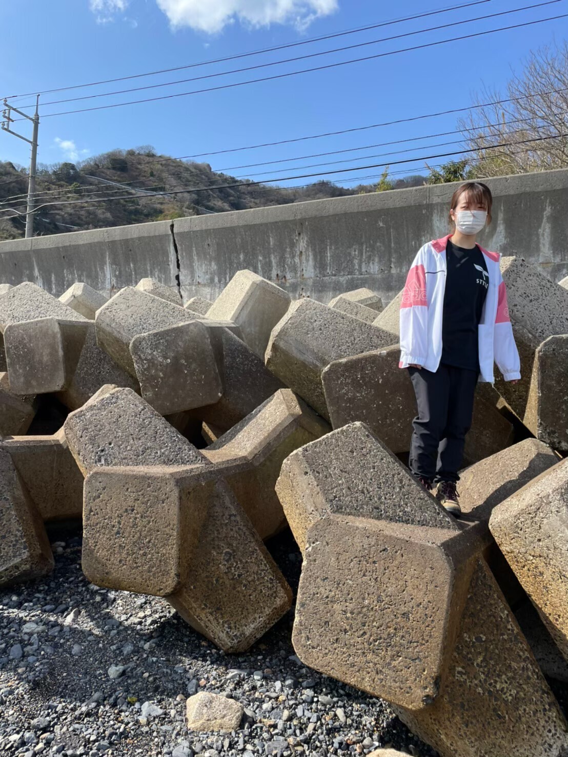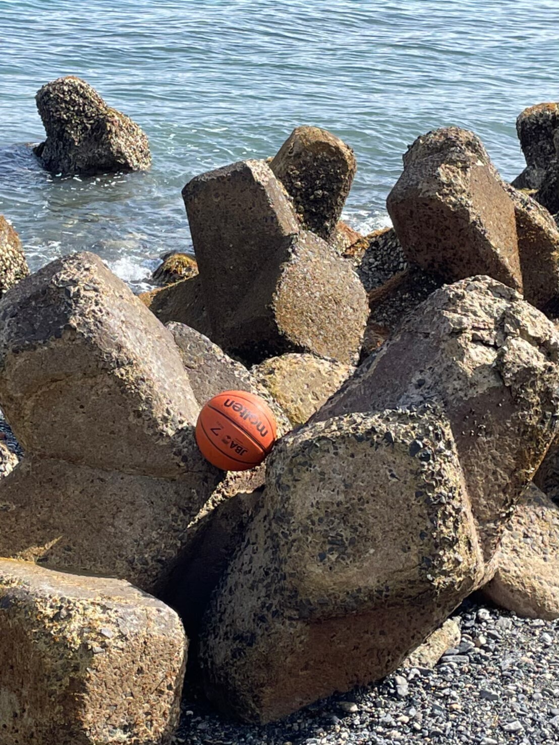除草の後は海で少し休憩タイム〜あいりんが漂流していたバスケットボールを見つけたり、水切りをして遊んだり、岩にくっついている貝を観察したり(笑)