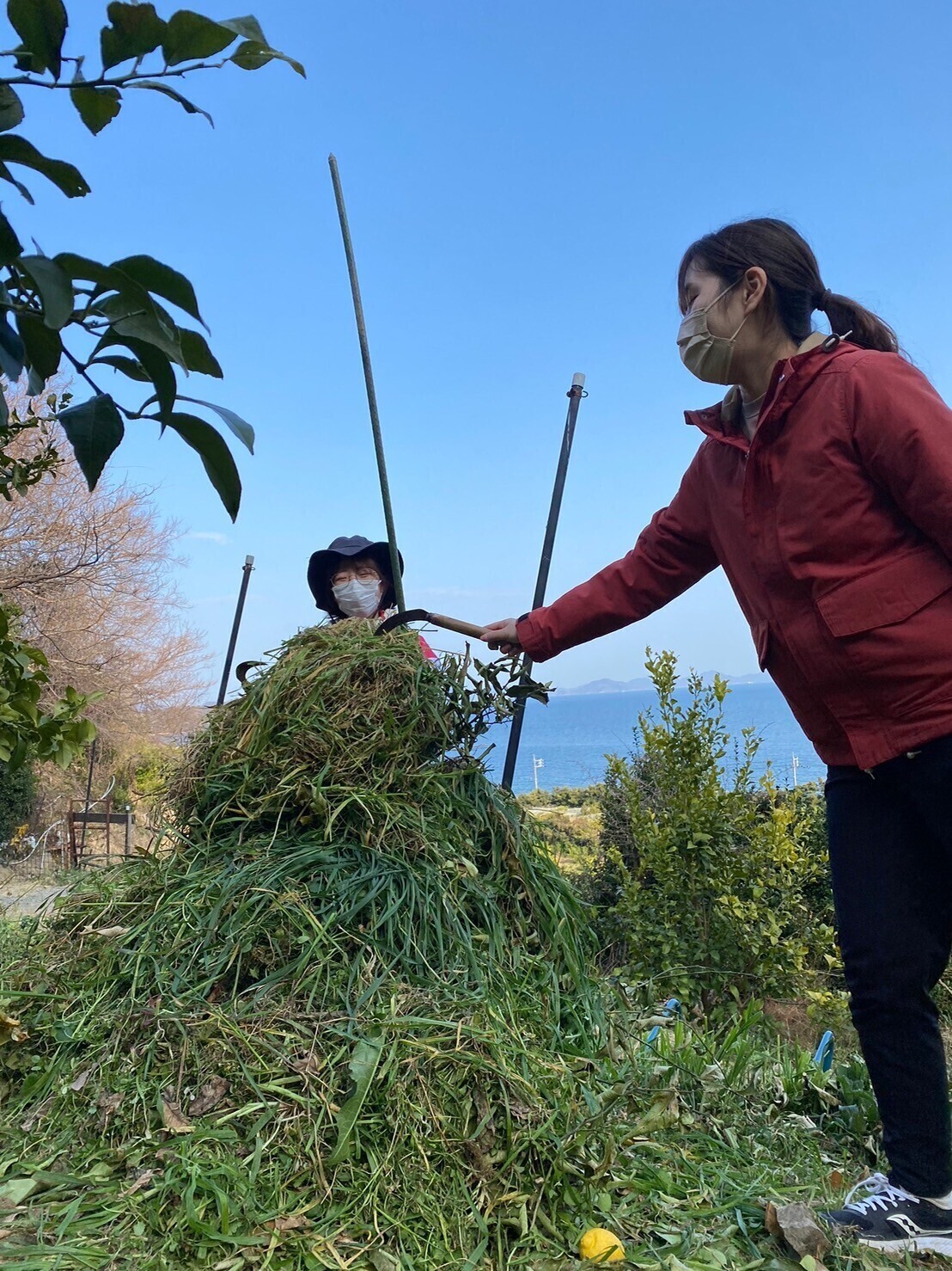 刈った草を積み上げたら、1mくらいになりました〜🌱
