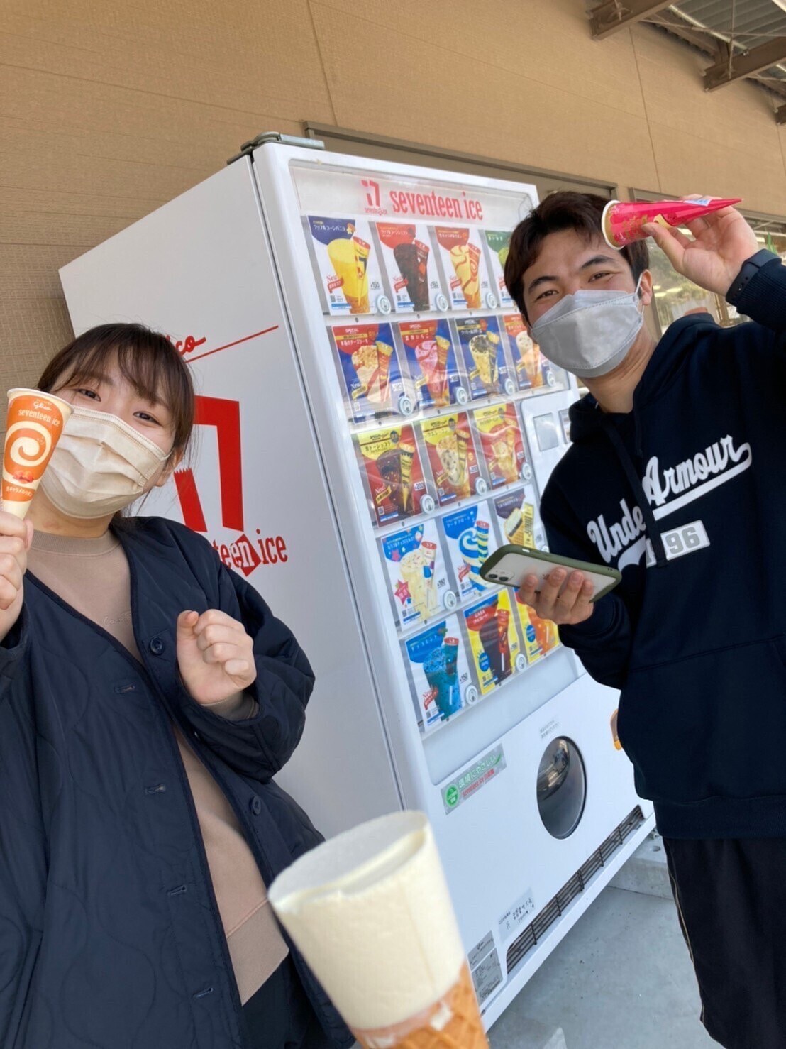 たくさん動いて暖かくなったので、ご褒美にアイスを食べました〜!🍦