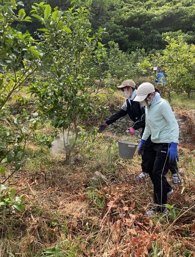 お昼休憩の後は、みんなでSTYLE農園で作業をしました!レモンの木に肥料をまいて、草刈りを行いました🍋