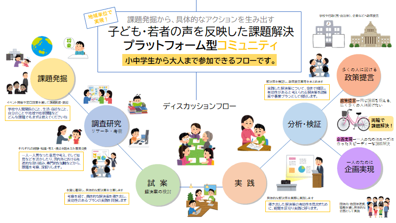 - 子どもたち・若い世代の声を反映することを目指した政策提言や企画実現