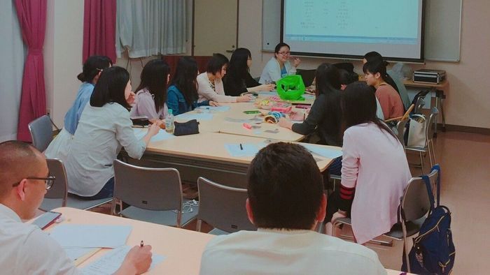(写真:ミーティングの様子。奥がメンバー、手前は担当の日赤職員)