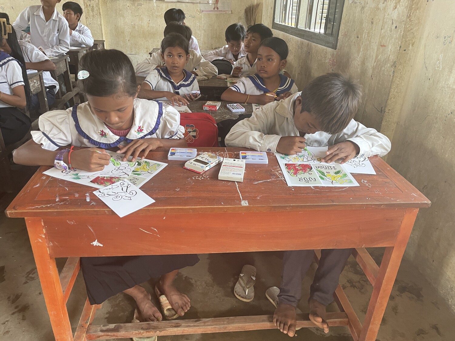 2024年4月29日 コンポンスプーBoeung Khnar小学校にて絵手紙教室を開催