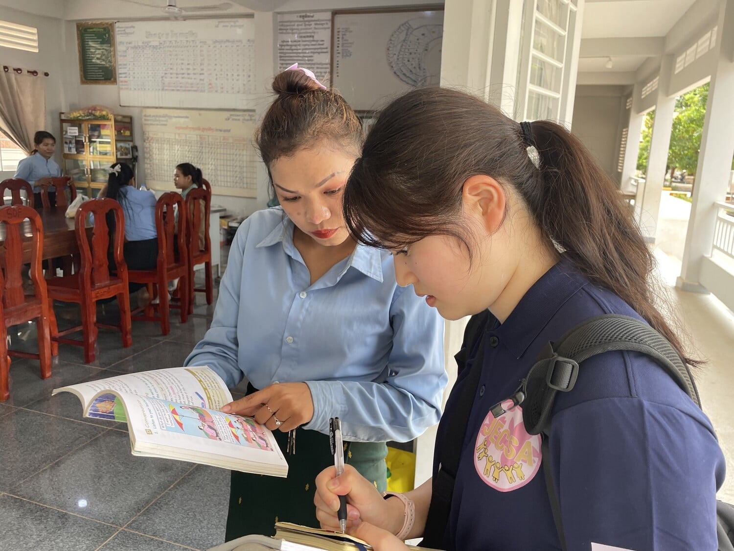 2025年7月14日 シェムリアップ州チェアリアトム小学校にて英語指導サポートを継続。