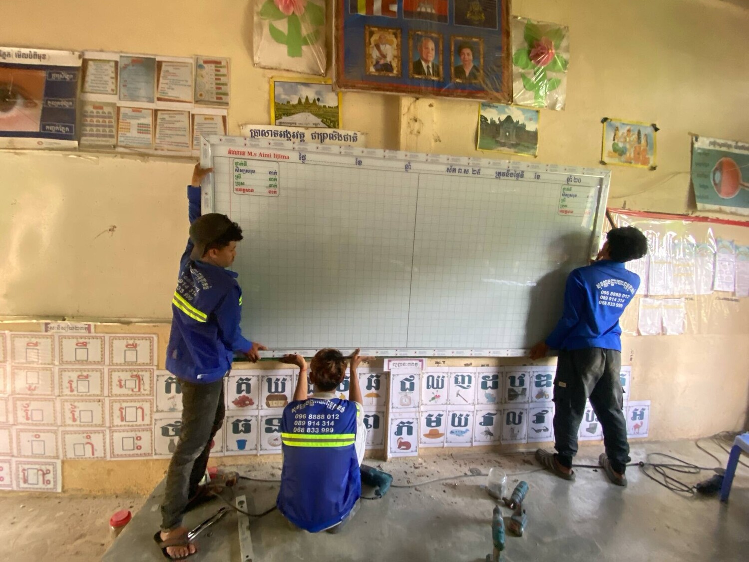 2025年3月20日 コンポンスプー Boeung Khnar小学校教室3教室にホワイトボードを設置210$