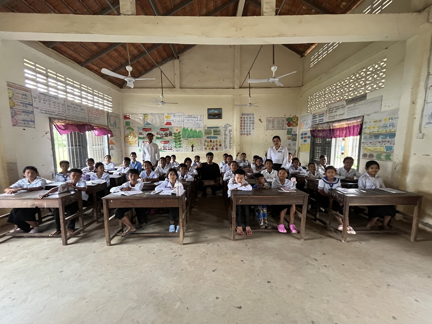 2025年5月20日 コンポンスプー Boeung Khnar小学校教室にシーリングファンを設置120$