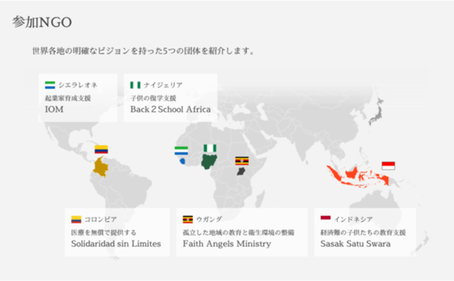 2021年4月には、NGO向け新サービスとして、共創型の定額制「Airfunding 海外NGO応援プログラム」の提供を開始しました。このプログラムではSDGsのゴールに沿い、自国の教育、医療、雇用などの分野にポジティブな変化をもたらすために活動している団体が、国境を越えて世界中から支援を獲得することをサポートします。