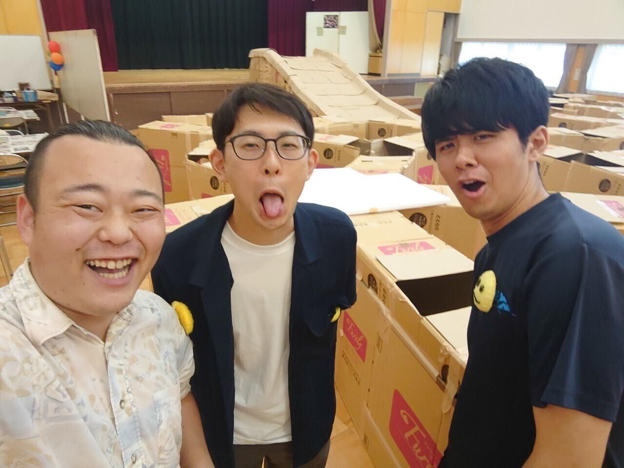後ろに映ってるのは段ボールで作った迷路と滑り台。これをすべて中学生たちが作ったと思うとすごいですよね!