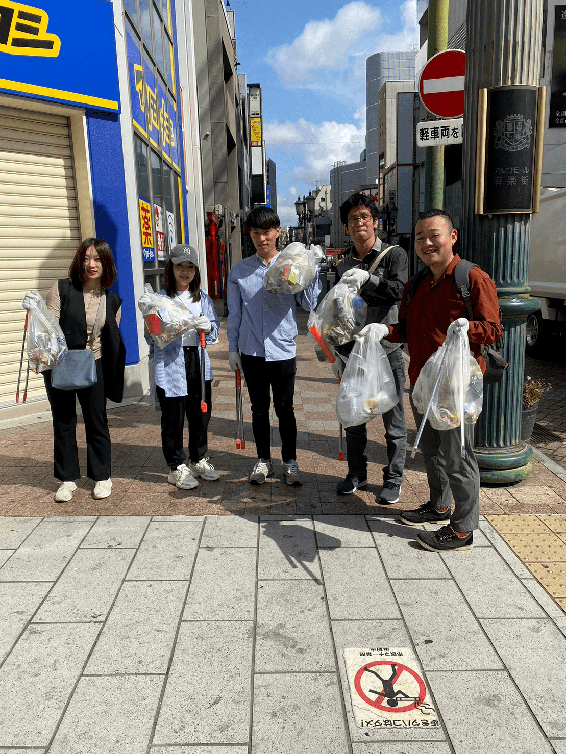 浜松市市民協働センターから出発し、遊楽街周辺をゴミ拾いしました。