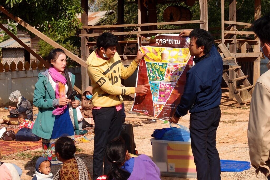 ISAPHの母子保健活動により住民が栄養の大切さを認識できたことで、子どもたちに良質なたんぱく質や不足している脂質などを補う食べ物を食べさせたいという考えになっても、適切な食品に適切なタイミングでアクセスできない問題があります。このボトルネックを解消する手立てとして、住民の生活に目を向けたところ、ラオスの昆虫食文化と村落開発基金に解決の糸口を見出しました。住民が、食用昆虫の養殖技術を身につけ自ら育てて食し、年間を通して必要な栄養素を摂取し続けることができます。