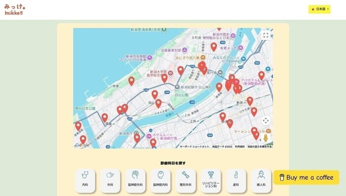 外国人にもやさしい医療機関を検索できるWEBアプリを開発しました。20の診療科目から絞り込みが可能に。新潟県、静岡県浜松エリアを中心に216施設を登録しています。