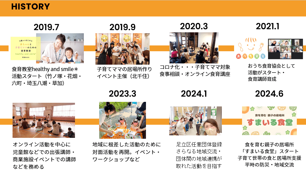 「親子が心穏やかに笑顔で過ごせる時間を増やす」ために、日常の中で親子で楽しく簡単にできる食育を伝えたり、様々な困難を抱える親子が安心して過ごせる居場所作りを行っています。