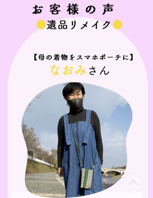 この活動は、私自身が大好きな母を亡くし、同じような境遇の方に何か出来ることはないかと考え立ち上げた事業です。遺品を日常で持ち歩けるようにリメイクしたら、心を強く持つためのお守りのようになるのではないか。そしてそれが、故人を想いながら前を向いて生きるきっかけになれればと思いを込めながら活動しています。