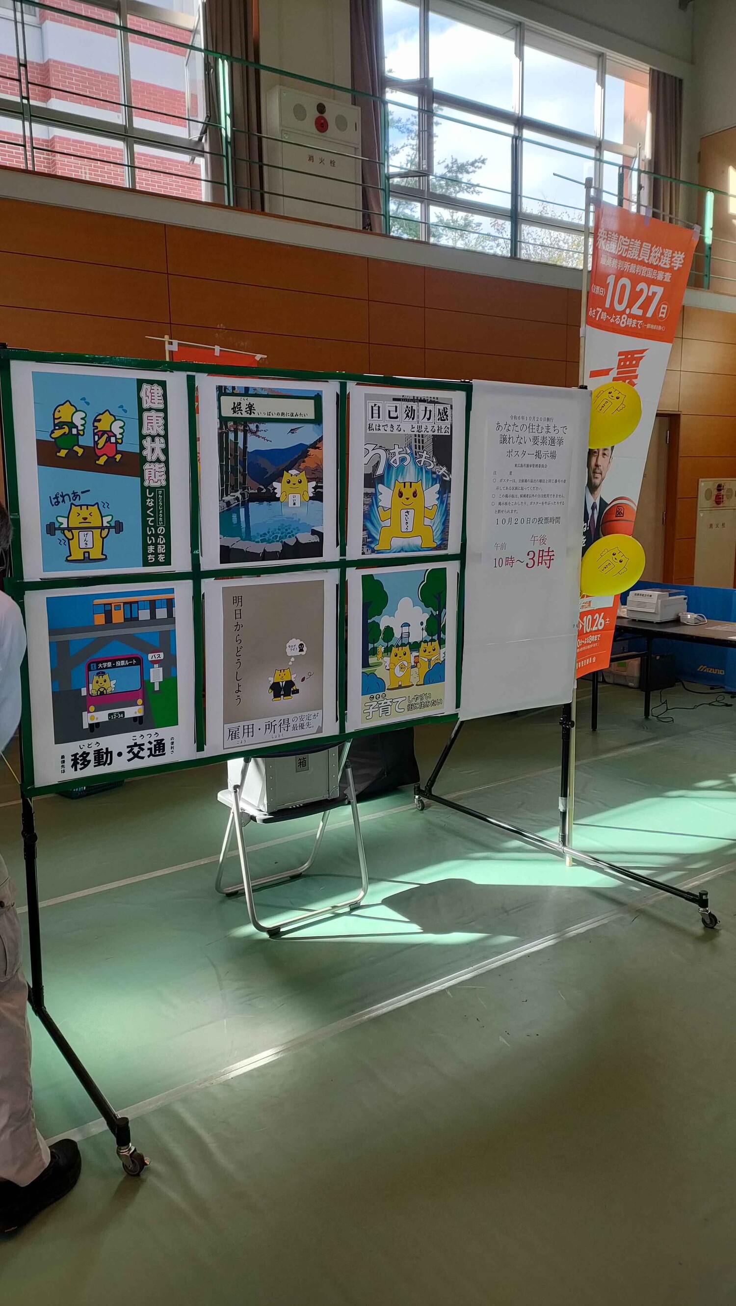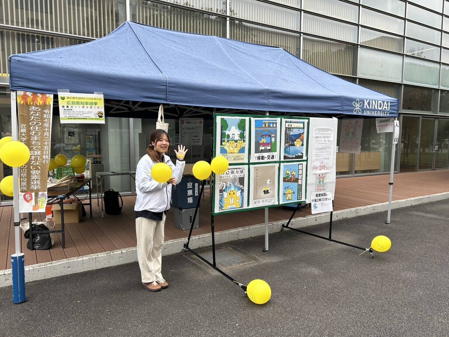 8月に実施したワークショップで企画した選挙啓発ブースを、広島国際大学東広島キャンパスで大学祭とともに行われた「地域まるごと健幸フェス」にて出展。