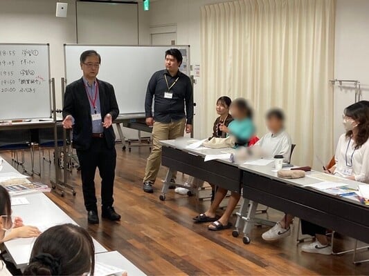 チアアップ彩たまでは社会人の方をお招きして、お仕事についてお話しいただく「キャリア教育」というイベントを実施しています。写真は「サラリーマン」というテーマでゲストの方をお招きし、レク形式で子どもたちにお仕事についてお話しいただきました。