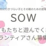 SOW 学校に行きづらい子とその親のための居場所のボランティア/インターン募集ページです。SOW 学校に行きづらい子とその親のための居場所に関連するボランティア/インターン募集も掲載しています。小中学生、高校生、大学/専門学生や社会人まで様々な方が参加可能なボランティアが掲載中です!
